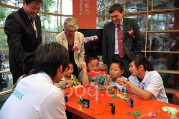 西门子作为“德中同行"的官方合作伙伴在此次展会中共有两个展厅,第一展厅主要展示西门子在能源产业链的领先和创新解决方案以及成功经验,包括电力,能源,水处理,交通,医疗及环保,同时展示了西门子助听器技术和欧司朗的先进的LED照明技术,第二展厅展示了西门子在中国的企业社会责任和艺术项目,厅内的“西门子探索箱”游戏区各种有趣的“能源与电力”小实验引起了众多观众,特别是孩子们的兴趣。
