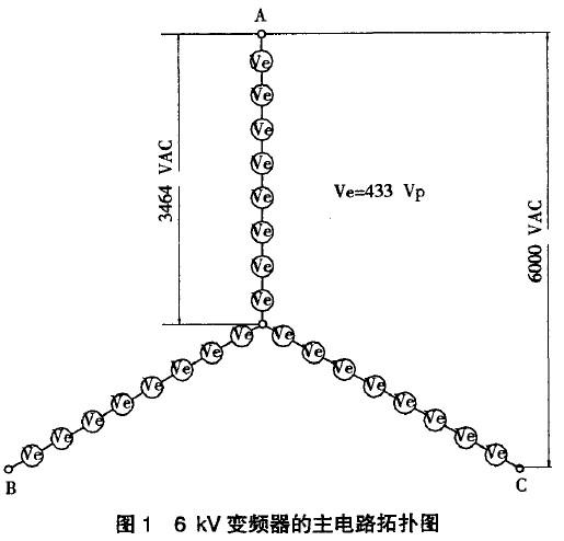 高压大功率变频技术的主要流派有两种:(1)电压源型变频调速方案;(2)电流源型变频调速方案;其中电压源型变频调速方案又分为:移相整流串联叠加输出技术和三电平技术。考虑到对电网谐波、功率因数的要求,和普遍使用的6 kV和10 kV电压等级,以及从安全角度出发所提出的旁路要求,同时考虑到对原有普通电机的使用,我们选择了移相整流串联叠加输出技术。现对此技术作一简单介绍。