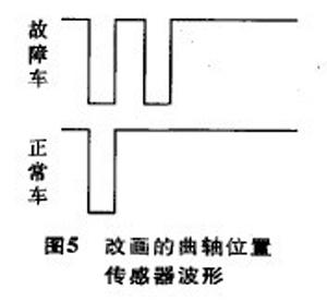 故障总结 为什么此车会出现间歇性起动困难的现象?再来看一下图1与图2中曲轴位置传感器的波形,假如在图1中曲轴位置传感器波形最上方向下一点的位置画一横线,又在图2中曲轴位置传感器波形上同样位置画一横线,根据在此线上