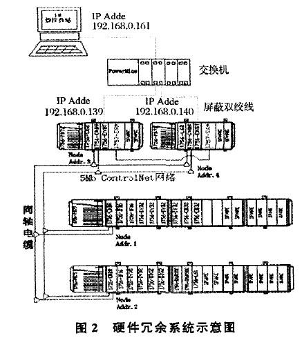 对于冗余系统要对主从框架上的ENBT模块的IP地址和CNBR模块的站点号做相应的设置:主从ENBT模块的IP地址要设成一致,CNBR模块的站点号要设成一致,同步成功后从框架的ENBT模块的IP地址和CNBR模块的站点号自动加1,并且主从框架CNBR模块的站点号的设置要高于远程10框架上的CNBR模块的站点号。当主机架的任一组件发生掉电、主机架中的任一模块被安装、拆卸、出错、控制器发生主要故、ControlNet分接头或以太网电缆断开的故障时控制权切换到从控制器,从而确保整个系统的不间断稳定运行。