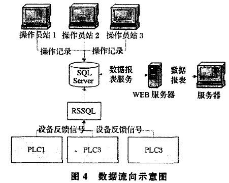 最终操作员站上发生的操作事件自动发送到SQLServer数据库服务器,各个设备的反馈信号通过RSSQL发送到SQL Server服务器,事件报表服务通过IIS Web服务自动发布到以太网上,各操作员站可以通过内嵌于HMI画面中的IE浏览器来访问报表服务。企业管理者也可以通过网络访问相应的IP地址来访问数据报表。