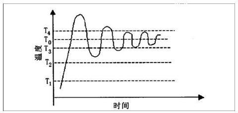 其中T1、T2、T3、T4可以通过组合参数的设定配置给模块,也可以由模块来自动的整定,这种控制策略不仅考虑了实测温度和设定温度的偏差,而且考虑了实测温度的变化趋势,可减少超调和波动,具有很灵活的自适应效果。实际的温度曲线如图4示。