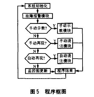 系统上位机监控软件采用西门子公司WINCCV5.0软件, 运用该软件设计显示浇注轨迹及示教参数输入等, 中文人机界面, 操作方便。