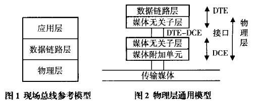 IEC61158—2给出了现场总线物理层通用模型,可用图2示可表示。现场总线通信装置是由数据终端设备(DTE)和数据端接设备(DCE)组成。从图2可看出,现场总线的物理层包含了媒体相关子层与媒体无关子层两部分。