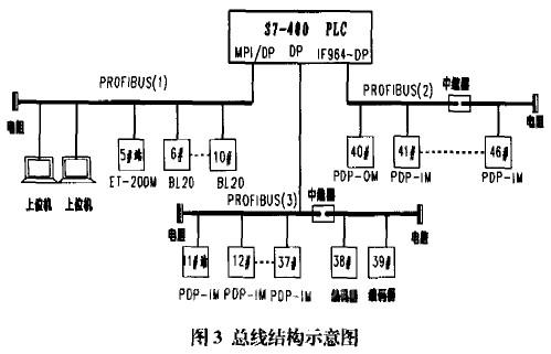 在炼铁高炉自动化控制系统中,分为槽下配料和炉顶加料部份,槽下系统共25个仓、19个斗,共计阀门31个,炉顶12个阀,卷扬电机、探尺设备配有编码器。在电气设计方而,分布区域广、阀门多、煤气区域易燃易爆的特点不容忽视,凶此,我们采用各输入输出点(包括数字量、模拟量)进入站点模块,通过一根总线传人_丰控室PLC,以此控制各阀门及电机动作。本文以现场总线的角度出发,结合采用德国西门子PIC系统和图尔克Prnfibus—DP工业现场总线技术,描述高炉自动化系统的实现,并对当前现场总线故障诊断的敏感问题提出了一些解决方案。