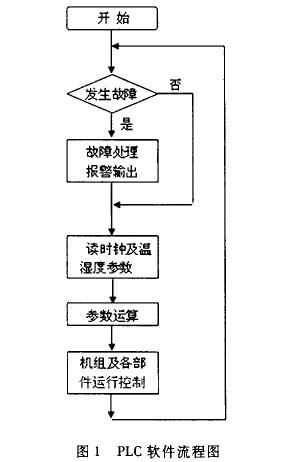 主控制器根据新风进风温度与设定送风温度的偏差值控制压缩机的开停机,作为送风温度的粗调。其目的是使空气到达加热器前的温度略低于设定的送风温度。为了使压缩机不会频繁启停,压缩机开机温度与停机温度之间的温度差设定了一个较大的值。而加热器的作用则是对出风温度进行微调。设定送风温度和实测送风温度这两个温度值用作一个PID回路运算的输入,PID运算的结果则用于加热器输出点的PWM输出控制,以控制固态继电器的 得到了用户的一致好评。通断动作。控制软件的流程图参见图1。