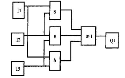 为避免PSLL6684油压开关误动作联锁空压机停机,又要确保实际润滑油压低时必须停机,对空压机的PSLL6684润滑油油压开关低联锁回路作了三选二改造。增加2个油压开关,在不改变联锁通道的前提下,利用LOGO!可编程继电器,编作三选二程序,从而实现PSLL6684润滑油油压开关低联锁回路三选二功能。即用3个油压开关检测润滑油油压,只有当2个以上开关动作时才输出,联锁回路启动,使空压机停止运转,确保设备不损坏。选用的是LOGO 112/24RC0可编程继电器,12/24 V供电,8个数字量输入,如下述: