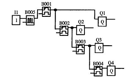 利用电源供电作为系统启动条件,驱动一个异步脉冲发生器,依次驱动4个上升沿延时继电器,使4个电磁阀通过中间继电器驱动循环动作吹扫袋式过滤器。