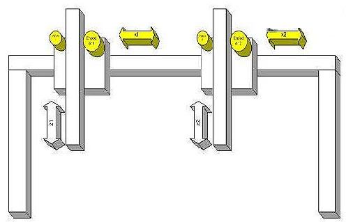 图1为一台起重机的示意图。起重机是用于在不同工位之间传输工件的装置。在起重机工作时,需要准确地知道工件被提升或落下时小车在X轴的位置,以避免工件在垂直运动时对人体造成伤害。而起重机垂直方向的运动是由一个第三方提供的NC控制器来控制的。PSS通过安全限位开关(如PSEN系列)来监测Z轴的位置运动,并通过绝对编码器来获取x轴的位置信号,这些都是与NC控制器独立的。PSS只有在起重机的Z轴没有过限(即安全限位开关未被触发)以及绝对值编码器正确地记录了水平位置的情况下起重机才能动作。
