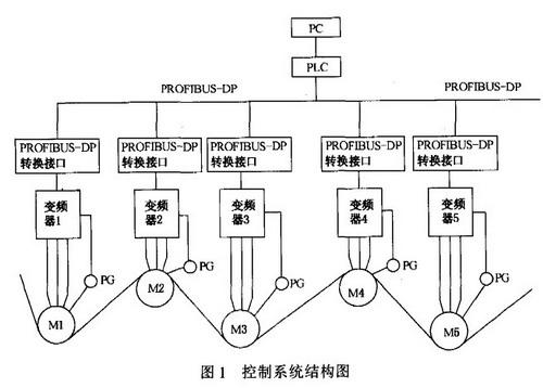 为了在造纸机高速运行状态(600 m/min以上)下对纸机各传动点进行同步控制和负荷控制,通常需要采用PROFIBUS-DP现场总线的多电机同步传动控制系统,解决多电机控制的同步性以及信号通讯的实时性、快速性和高精度性。