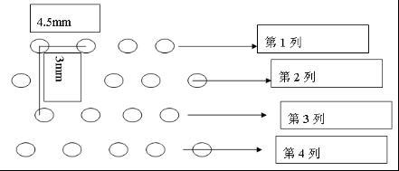 七头钥匙机是一种同时加工七把钥匙的设备。钥匙形状如图1所示,该钥匙有两面,每一面都有18个孔, 孔的排列如图2所示。这种类型的钥匙,孔的深度有三个规格,按照排列组合可产生出3亿把不同的钥匙,这使得钥匙重复率非常低。