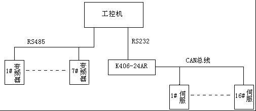 在本系统中,工控机主要起到设置变频器频率,钥匙编码的生成和传输,通过PLC设置伺服的速度,并显示各伺服的实时坐标;PLC主要是通过CAN控制伺服的动作,同时也通过I/O点控制变频器的启停。