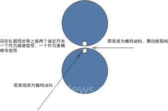 上一种方式因为要求准确停机,要求变频器要很快的降速,所以必须加装制动单元、制动电阻。而安庆一个准备做轧机改造的人提到这样一个观点,因为能耗制动也是有能量浪费,看能不能不进行能耗制动,而可以让轧辊先长一点时间减速,然后再低速空转一圈,这样做有两个好处:一个为可以不用加装能耗制动单元,第二个为低速运行,来料后再加速轧制比从零速加速轧制要轻松一点,类似于注塑机上的4HZ下限频率。此方式我还没有去试验过,但我觉得还是有一定道理的,马上就可以试了。而安庆这个叶经理他还自己做了一套横向进料的装置,基本上可以满足料进入轧辊后不跑位,成品合格率能够大大的提高了。