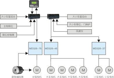 大车电机为8极电机-7.5KW,大车变频器型号为MD320T-45KW;
