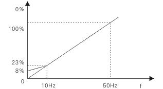 大小车因为是一拖多运行,控制方式应选为 U/F控制。适当地提高中频电压可以改善低频特性,提高启动转矩;提高零频电压可以加大直流强励磁,可以有效改善大小车的启动特性。其曲线参见下图: