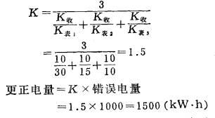 29.某用户安装三相四线电度表加配一次匝数为3匝、变比为50/5的电流互感器计收电费,安装时误将电流互感器一次匝数分别穿为1匝、2匝、3匝,而收费按50/5计算,现已抄见电量1000kw·h,若在三相负载基本平衡的情况下,如何计算更正电量?