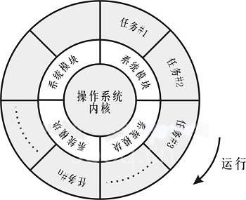基于这样的操作系统,PCC的应用程序由多任务模块构成,这样给项目应用软件的开发带来了了很大的便利,因为这样可以方便地按控制项目中各部分不同的功能要求,如数据采集,报警,PID调节运算,通信控制等,分别编制出控制程序模块(任务),这些模块既相互独立运行,而数据间又保持一定的相互关联,这些模块经过分步骤的独立编制和调试完成之后,可一同下载至PCC的CPU中,在多任务操作系统的调度管理下,并行运行,共同实现项目的控制要求,这一特点,可图示如下: