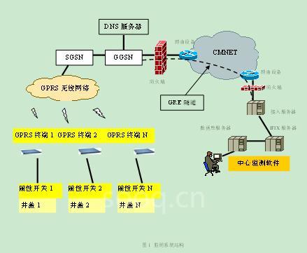 3、 GPRS终端:与磁性开关连接,接收到磁性开关的闭合信号后,通过GPRS网络把报警信息传输的控制中心,由控制中心软件显示报警信息。