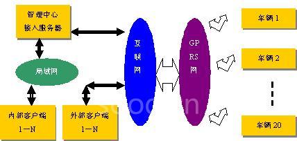 控制中心管理软件采用C/S结构,将GIS系统、TCP网络通信、SQL数据库操作结合起来,整个系统使用一个接入服务器和多个客户机,可以多台计算机在不同地方查看不同的车辆的状态。