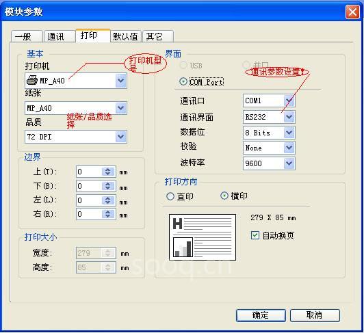 (1)新建項目:在【選項】->【设置模块参数据】->【打印】功能选项里面设置,如图2所示。注意,新建项目设置打印com port参数要和打印机背后的拨码通讯参数保持一致。