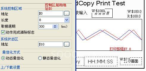 (2)建立打印画面:建立需要打印的画面,画面上需要设置报表输出按钮或者用系统控制区最后一个字(SCFR)的bit8位出发打印功能,如图2所示。