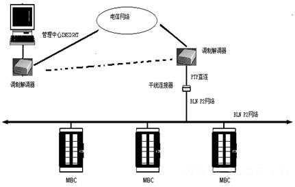 管理中心工作站和干线连接器上都连接调制解调器,2个调制解调器拨号互通之后形成一个连接通路,INSIGHT即可正常的与现场的BLN总线建立通信。