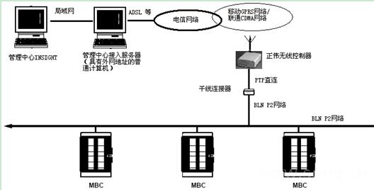 正伟的无线传输控制器自动与中心的接入服务器建立连接,鉴权,实现通信,将IBSIGHT和干线连接器连接互通,形成一个连接通路,INSIGHT即可正常的与现场的BLN总线建立通信。
