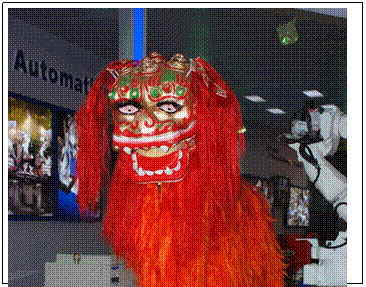 展示中的配乐选用《罗汉舞狮》乐曲,曲风明快节奏感强。为了解决机器人动作与铿锵的乐曲协调一致的难点,舞狮程序全部事先在电脑上由离线编程软件——MotoSim EG获得,机器人动作的快慢、起止时间得到准确控制,使得IA20舒展的动作与《罗汉舞狮》乐曲完美贴合。