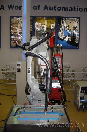 展示的焊接系统由MOTOMAN-HP6和UP50N构成,UP50N握持汽车消声器部件,由HP6机器人进行焊接。此工件焊缝位置复杂,焊缝与工件间距狭小,焊缝最佳摆放位置对应的工件位置变化大,双机协调焊接很好地满足了该工件的焊接工艺要求。焊接进程中,工件握持机器人根据焊接进程,随时进行工件的姿态和位置的调整,使焊接机器人在始终保持最优焊枪姿态和焊缝最佳摆放位置的条件下进行焊接,从而取得最好的焊接效果。