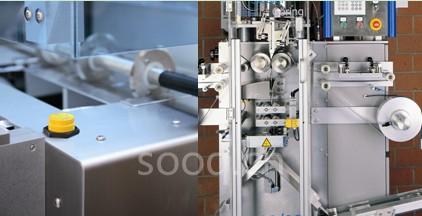 如图所示,VPL流动(枕式)包装机上的包装材料从辊子上进料,机器按垂直方向运行。被包装产品通过收集箱和下管被送入包装袋中;填装、密封和分离过程连续进行。横向密封展的主要驱动装置是一台无磨损的线性电机。VPL流动(枕式)包装机的一些优异特性包括:加工类型广泛且性能好,具备存储单个生产用程序的能力;能对密封次数自由编程,密封压力高;加上有真空薄膜下拉装置,它保证了稳定的袋长,即使是超薄膜(2μm)的情况下也是如此。 横向密封工具所施加的高压意味着密封缝十分密实。机器运动部件采用特殊的镁合金,减小了运动的惯性,同时增大了输出。在必要时,机器能够容易地集成其他特性,如脉冲焊接、生产开合式包装的拉链带附加装置、仿形以及通过调制解调器进行在线的诊断。