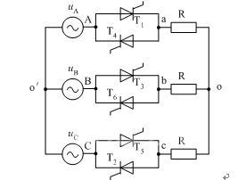 1.在三相电路中至少有一相正向晶闸管与另一相反向晶闸管同时导通。这对无中线的Y形和D形电路尤为重要,否则不能构成电流的通路。