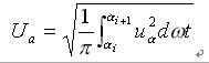 设相控角为a时A相输出电压的瞬时值为ua,根据上述分析,ua的波形为已知,因此可按下式求出输出电压的有效值Ua,它是相控角a的函数,即