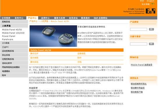 新版栏目秉承了改版前的产品分类:控制系统、人机界面、I/O系统、工业PC、运动控制系统、安全系统、过程控制系统、自动化软件、网络和现场总线模块、电源模块及附件。在此基础上,下一级分类更加细致,增加了详细的技术参数,并支持产品文档的下载。为了客户配置系统的需要,右侧特别安插了必须附件和可选附件,供参考。