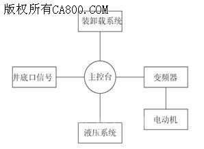 控制系统包括制动系统,即液压站和盘型闸;井底井口信号系统;自动装卸载系统和传动系统。系统之间的相互关系如图3所示。控制系统中的装卸载系统、井底井口信号系统及液压站系统和所有的绞车控制系统中使用的区别不大,主要是传动系统和传统的转子串电阻方式有很大的区别。
