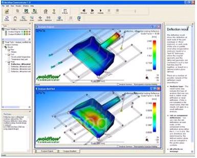 而用于塑料注塑成型分析的Autodesk Moldflow中自带了一款叫Autodesk Moldflow Communicator的软件,可以把分析结果用三维模型、以量化的方式展示出来;这款软件还提供了一种解释分析结果的方式,相当于“看图说话”的标准答案,这样不同的设计人员分享这些结果就变得更加容易。