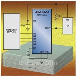 Maxim推出可监控6路电压的微处理器监控电路MAX16055,器件集成了复位定时器,无需外部电容。器件采用3mm x 3mm超小尺寸封装,理想用于电信、网络设备、存储器件、高端打印机以及计算机等多电压系统中的低压监测。6路监测电压中任意一路降至门限以下时,将触发漏极开路复位输出,该输出在所有6路电压上升至对应门限之后继续保持至少140ms的复位状态。复位输出内部上拉至VCC,省去了外部电阻,但也可以对其过驱动,以匹配其它逻辑器件。此外还提供手动复位输入。Maxim提供10种版本的MAX16055,分别具有不同的门限和电源容限,以满足所有低压系统的需求。提供-5%和-10%两种容限的3.3V、3V、2.5V、1.8V、1.5V、1.2V、1.1V、1.0V和0.9V电源监控预设门限;此外还提供门限可调节的版本,以满足目前大多数的标准逻辑器件。器件采用一路被监测输入供电,电源范围为1V至5.5V,从而省去了独立的VCC引脚。MAX16055仅消耗25微安(典型值)的静态电流,工作在-40°C至+125°C汽车级温度范围,提供节省空间的3mm x 3mm、10引脚µMAX®封装。