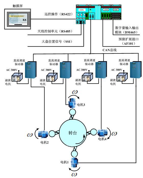 多电机消隙天线控制系统在天线控制系统中应用比较普遍,特别是对于大型雷达天线的转台的消隙就更为常见。我公司运用目前盛行的CAN总线技术和产品,为多电机控制系统提供转台消隙、方位、俯仰等功能的全套控制解决方案。该方案具有以下显著的特点: