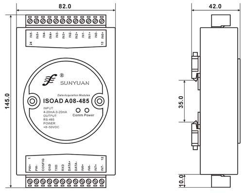 产品包括电源隔离,每通道的信号隔离,A/D转换和RS-485串行通信。每个串口最多可接255只ISOAD A08系列模块,支持两种通讯协议,命令集定义的字符协议和MODBUS RTU通讯协议,其指令集兼容于ADAM模块,波特率可由代码设置,能与其他厂家的控制模块挂在同一RS-485总线上,便于计算机编程。