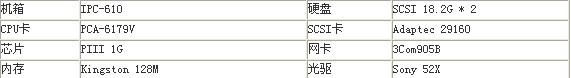 以及Adaptec29160的SCSI卡。它的转速是10000转,足以满足CC的需要。由于他们软件的限制,选择网卡为3Com905B,其他设备就是最最常用和稳定的配件。