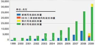 据美国风能协会(AWEA)2009年第二季度市场报告显示,该季度美国新安装的风力发电机总装机容量达到1210兆瓦。到目前为止,美国风能发电量达到4000兆瓦,虽然大大低于第一季度的2860兆瓦,但这意味着今年上半年美国新安装的风电机组总装机容量已经超过2008年全年创下的历史最高水平。美国风能市场近年来的迅猛发展体现出美国对清洁能源的关注,然而其良好的发展势头中也包含着业内人士对其的担忧。