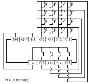 键盘的数据读入选用台达DVP12SA11T小型PLC,利用矩阵驱动原理的PLC键盘数据读入电路原理如图4所示。