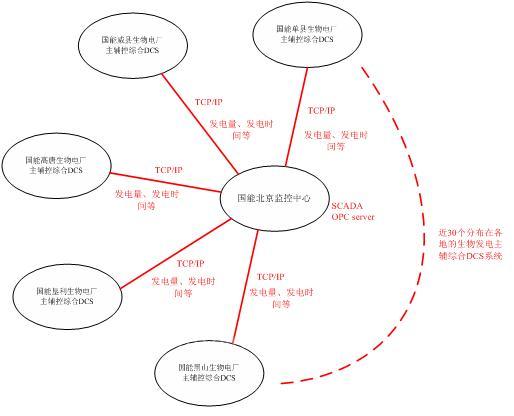 ● 各电厂的DCS系统在国能总部监控中心的监视系统里被看作一个设备,在监控系统里需要安装一个OPC服务器软件,它负责实现与远程DCS的通讯协议, 配置OPC服务器可以确定从远程DCS采集哪些数据;