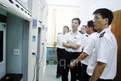 宁波检验检疫局局长山巍(右三)在电器安全检测中心检查指导工作
