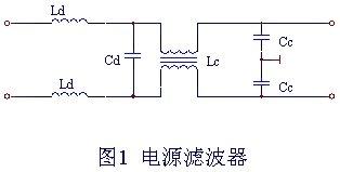 滤波是一种抑制传导干扰的方法。例如,在电源输入端接上滤波器,可以抑制来自电网的噪声对电源本身的侵害,也可以抑制由开关电源产生并向电网反馈的干扰。电源滤波器作为抑制电源线传导干扰的重要单元,在设备或系统的电磁兼容设计中具有极其重要的作用。它不仅可以抑制传输线上的传导干扰,同时对传输线上的辐射发射也具有显著的抑制效果。在滤波电路中,选用穿心电容、三端电容、铁氧体磁环,能够改善电路的滤波特性。进行适当的设计或选择合适的滤波器,并正确的安装滤波器是抗干扰技术的重要组成部分。在交流电输入端加装的电源滤波器电路如图1所示。图中Ld、Cd用于抑制差模噪声,一般取Ld为100 mH -700mH,Cd取1µF -10µF。Lc、Cc用于抑制共模噪声,可根据实际情况加以调整。