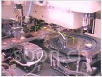 Die bonding 过程中需要一个多段式的连续速度profile,也是一个往返运动,中途包含了 bonding时间的调整,这过程中还必须根据影像检测结果来校正晶粒角度,以及其它 I/O点的配合等等,较低阶的机器无法作移动中的角度校正,往往需要在 bonding 之前停下来校正完毕后再bond,ADLINK SSCNET可以在移动中根据影像数据来校正角度,达到bonding连续性的效果,这部份讲求的是周期速度,当然也是越快越好,除了Motion动作的平顺性之外,厂商对bonding的know-how也是关键之一。如图三是一台Die Bond Machine,主要动作是把在右边晶圆上的晶粒取出,并放到左边的导线架上。若是Flip Chip Bonder 也是可以用连续速度profile方式实现。如下图四便是利用内建功能所实现的 bonding 速度图,并含有动态位置校正的部份,因坐标轴信息是机密所没有显示出。