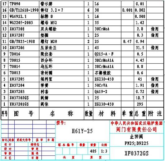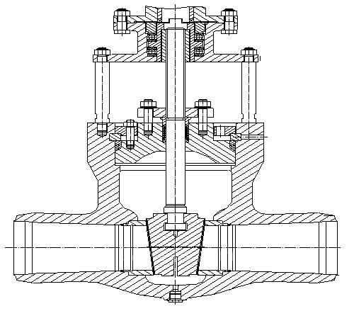 阀门中的连接件、结构件相当多,涉及到方方面面,如(图1)所示为电站闸阀装配示意图中,紧固件、密封件、润滑件、轴承等标准件特别多,且规格尺寸各异,原来使用的二次开发软件VALVE只有几种常见的螺栓、螺母选型,考虑的不多、不全,给设计带来诸多不便,没有办法只有翻手册、翻标准、查数据,最后还得设计者自己画出来,既繁琐又不符合国标。现在使用CAXA电子图板后,系统备有大量国家标准的参量化图库,它覆盖了机械设计、电气设计等所有类型。其中机械类图库有:螺栓和螺柱、螺母、螺钉、销、键、弹簧、液压气动、电气、轴承、电机、密封件、机床夹具等20多个大类,1000余种,近30000个规格的标准图符。每一个大类又分成10~20个小类,如螺栓和螺柱又分成(如GB27-1988六角头铰制孔用螺栓-A、GB/T18230.2-2000栓接结构用大六角头螺栓短螺纹长度C级8.8和10.9级)