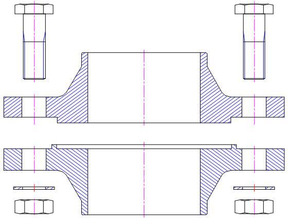 利用功能强大的图库,可以快速而准确的绘制各种复杂的图形。如绘制公称通径为100mm的法兰盘对接安装图的步骤为例来进行说明: