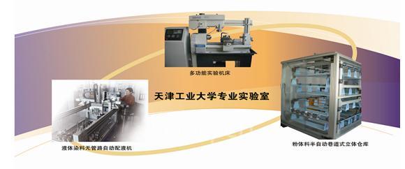 天津工业大学(原天津纺织工学院)专业实验室在原中国纺织工业部教育司于1990年批准的天津纺院自动化教学、科研、试验中心的基础上发展起来的。近年来为了实现学生与工厂企业现场设备的“零距离”接触。该实验室与天津罗升企业有限公司合作,设备正在陆续更新,更新的设备均为小型专业设备(亦称小样机),目前已有:粉体料半自动巷道式立体仓库,液体染料无管路自动配液机,多功能实验机床等设备,陆续即将更新的有退、煮、漂联合机和热风拉幅定型机。