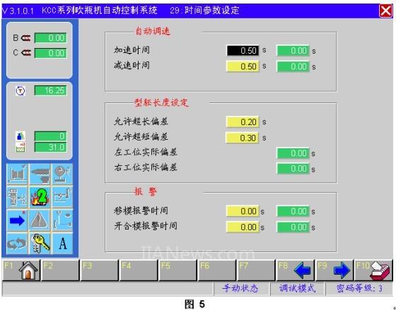 4、修改了型胚长度自动调节系统的软件,能做到双工位的自动调节。(见图5)