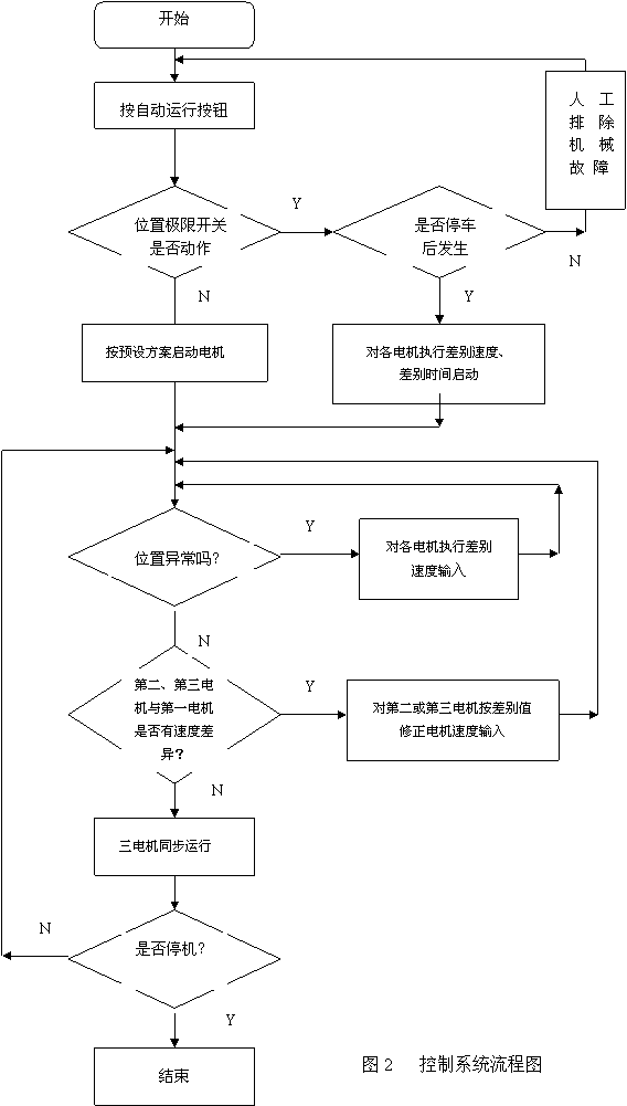第四种控制方式和第五种控制方式均是闭环控制,都能满足控制要求。比较起来,第四种控制方式以控制转矩为主,追求各电机转矩及速度同步,同步精度高一些,但配置价格较高;第五种控制方式以控制各电机速度为主,同步精度稍差一些,但配置价格较经济,因此,我们在经反复比较和考虑后决定采用第五种控制方式。